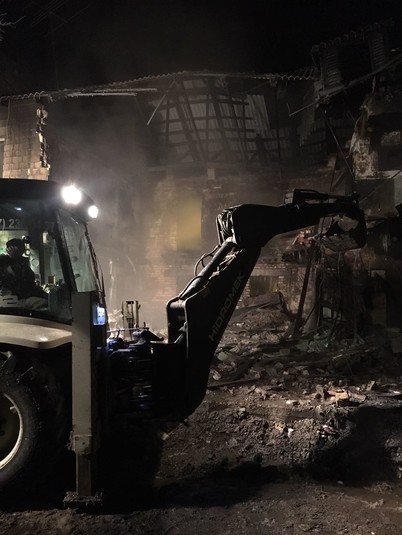О 7:10. 24 січня підрозділами ДСНС пожежу ліквідовано. Продовжуються роботи з розбирання уламків даху та перекриття будинку.