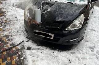 Машина вціліла, проте металобрухт із РФ пошкодив передню частину автівки.