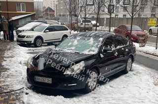У Софіївській Борщагівці на Київщині уламки збитої російської ракети застрягли в авто, яке було припарковане поблизу багатоповерхівки. Про це повідомили користувачі соцмереж.