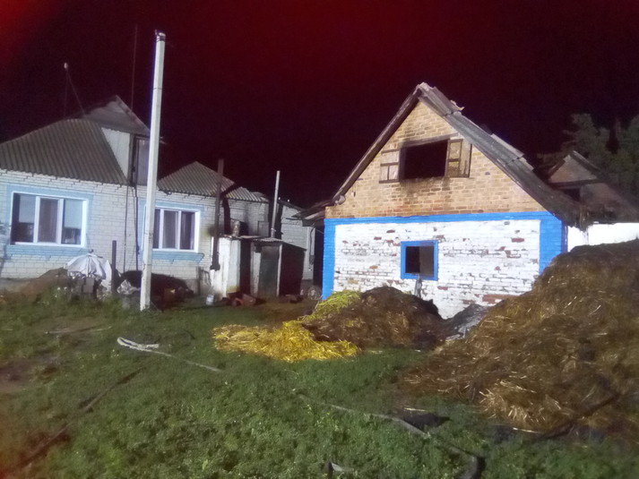 «На подію виїхали чергові караули 5-ї Державної пожежно-рятувальної частини м. Узин та 1-ДПРЧ м. Біла Церква. По прибуттю розвідкою встановлено, що горить господарча будівля, солома в тюках, є загроза перекидання вогню на поруч розташовані житлові будинки. Поруч з будинками зберігалось 3 тонни соломи», - повідомляє пресслужба Головного управління ДСНС у Київській області.