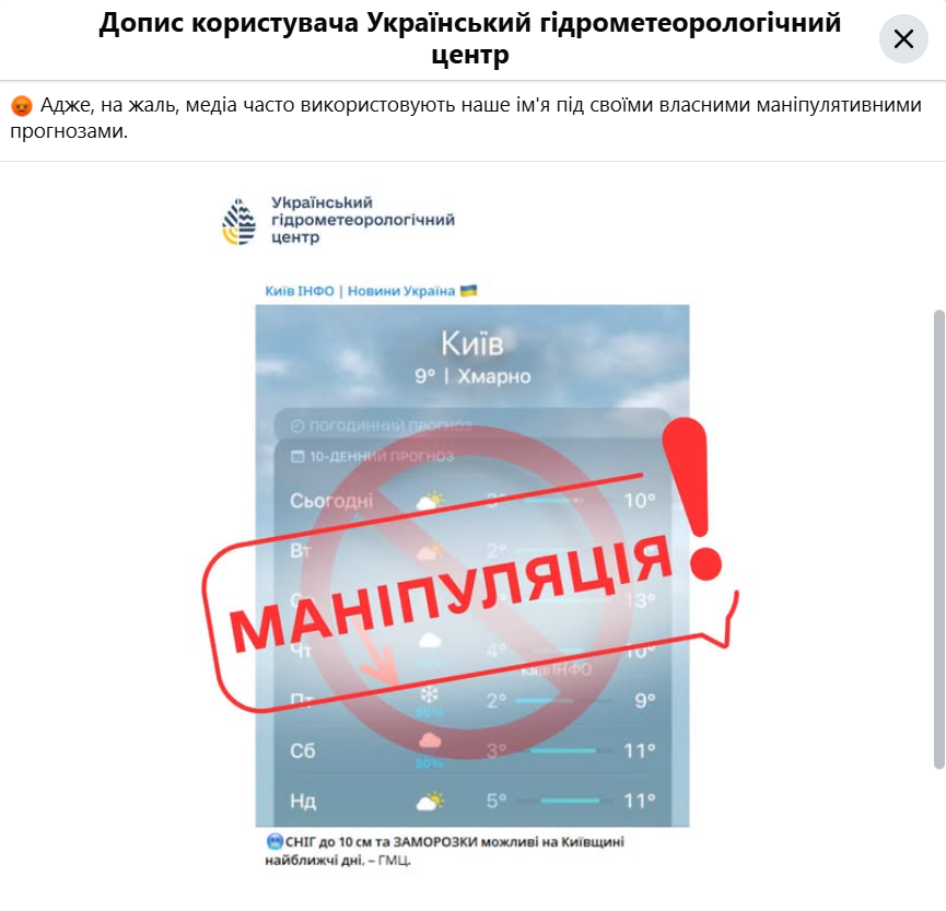 Раніше низка ресурсів поширила інформацію про нібито снігопади, зокрема про «до 10 см снігу» на Київщині.