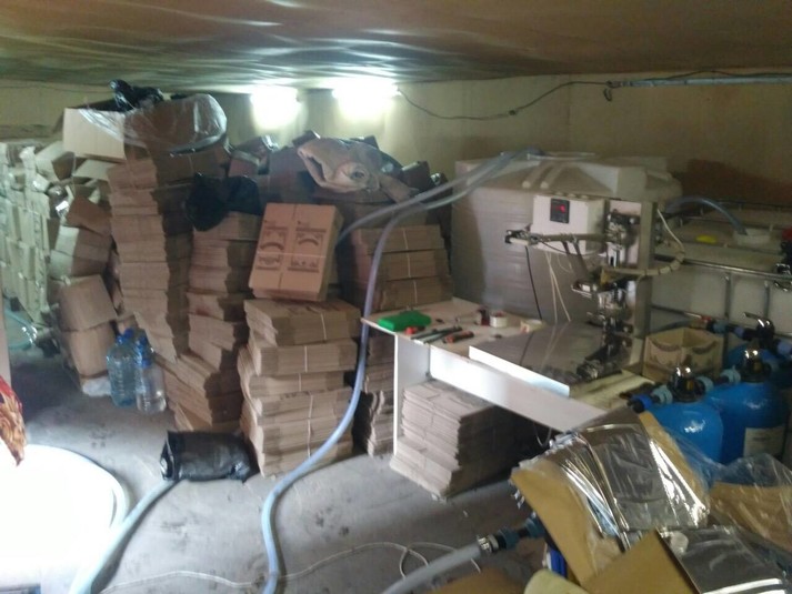 Під час проведення обшуку виявлено обладнання для виготовлення, розливу та фільтрування фальсифікату, 15 бочок зі спиртом об’ємом 1650 кг кожна, ящики з готовою до реалізації продукцією, пусту тару, підготовлену для заповнення контрафактним алкоголем, товарно-транспортні накладні та вантажний транспортний засіб.