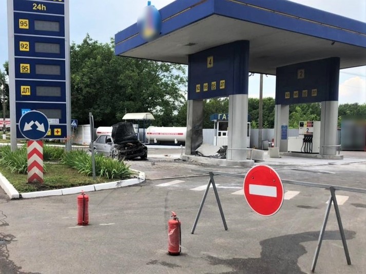 Раніше рятувальники повідомили, що автомобіль зіткнувся із заправними колонками АЗС «Іртерлогос». Внаслідок цього виникло загорання моторного відсіку автомобіля.