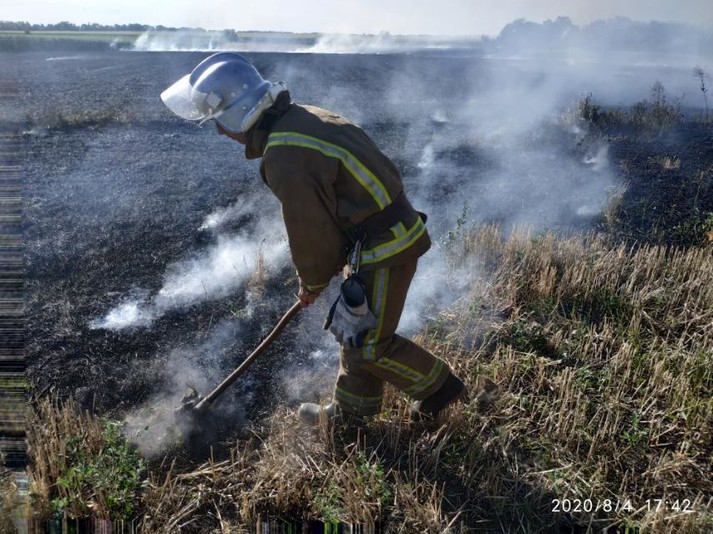 Вогнем знищено стерню на полі на площі 1 га та 30 тюків соломи загальною вагою 600 кг.