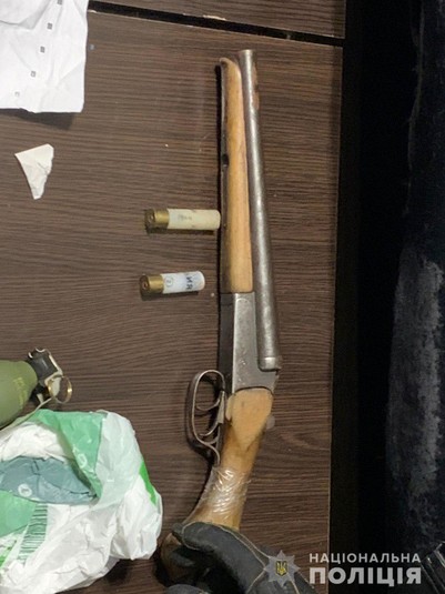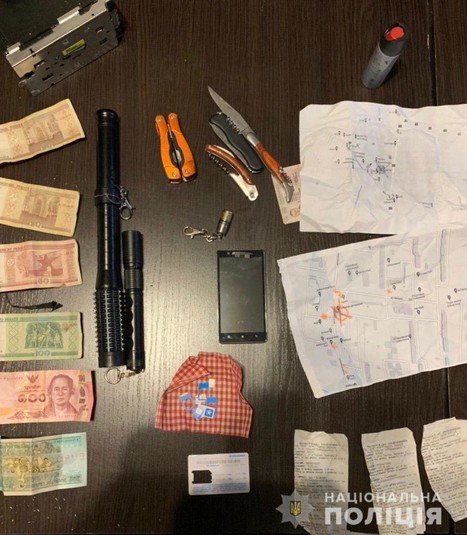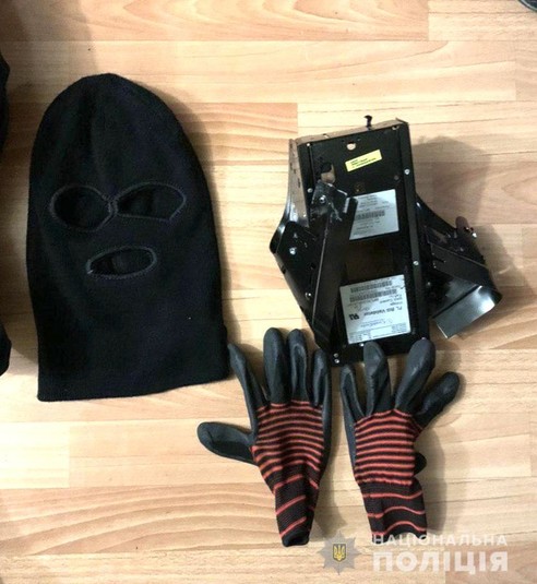 При проведенні 5-ти санкціонованих та 3-х невідкладних обшуків у помешканні зловмисників поліцейські виявили та вилучили балаклави, пістолети, обрізи, набої, боєприпаси, ножі, схеми розташування терміналів, гроші.
