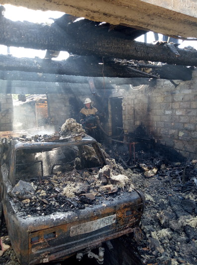По прибуттю рятувальниками було встановлено, що горить приватний гараж по всій площі 35 кв. м та автомобіль ВАЗ-2101.