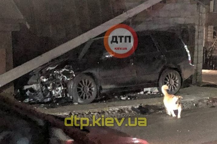 На фотографіях, опублікованих Telegram-каналом dtp.kiev.ua, можна побачити, що після зіткнення автомобіль Subaru в'їхав у стовп, який згодом упав на машину.