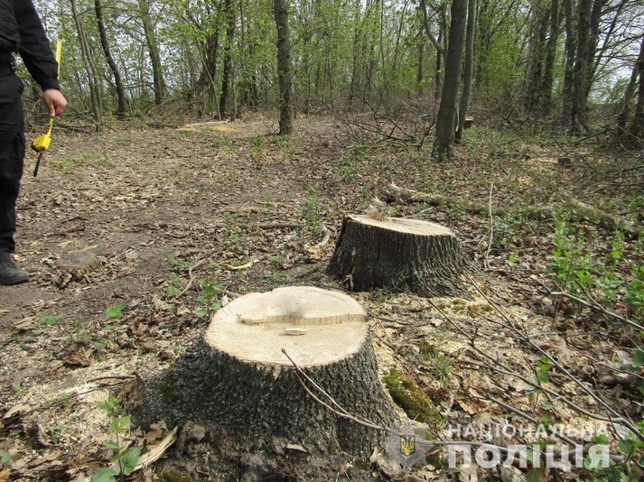 Під час обстеження ділянки працівники поліції виявили зрубаними одинадцять дерев породи ясень та дуб. На місці події поліцейські встановили особу правопорушника. Ним виявився 61-річний місцевий житель. Про це повідомляє пресслужба Головного управління Нацполіції в Київській області.
