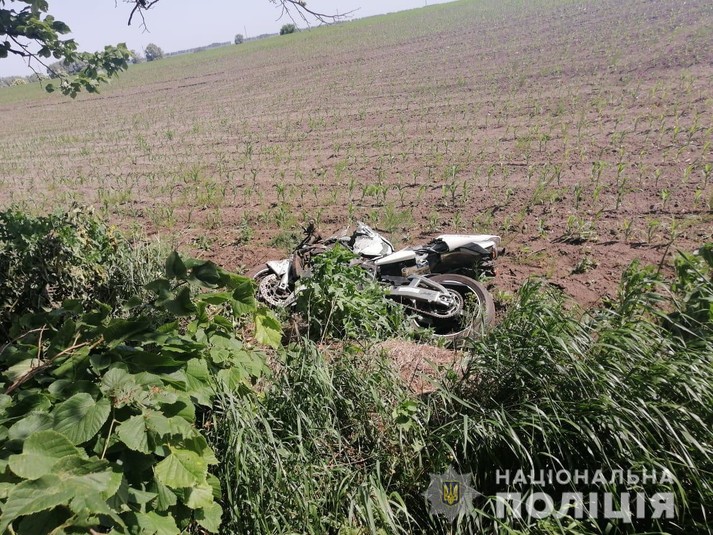 Знайшли тіло молодого чоловіка на узбіччі, у кущах, на відстані близько 30 км від того місця, де він був зафіксований камерами спостереження. Також виявлено мотоцикл з характерники для ДТП пошкодженнями.