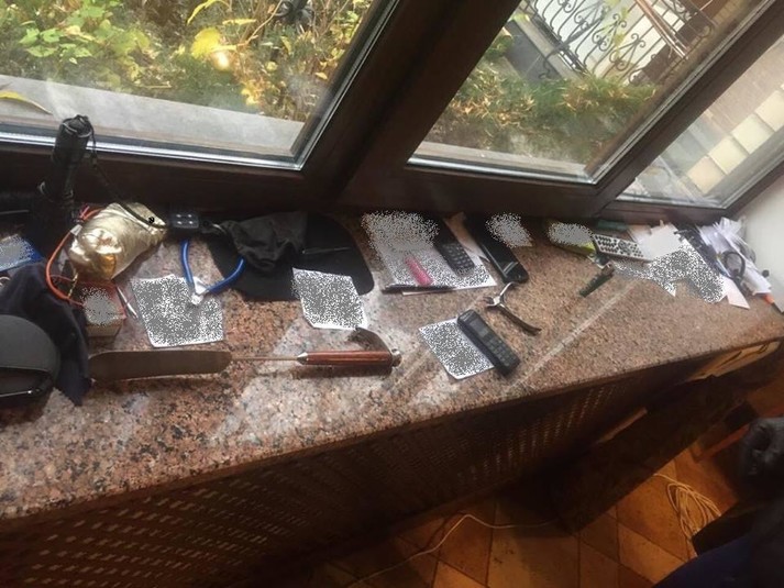 За результатами проведення десяти санкціонованих обшуків за адресами проживання фігурантів правоохоронцями виявлено та вилучено автомобілі Lexus LX 500, Mitsubishi L200 та Mercedes SL55, спеціальні пристрої для сканування та автозапуску двигуна автомобіля, пристрої для заглушування GPS та GSM сигналів, пристрої для пошуку «маячків», прилади для зміни ідентифікаційних даних транспортних засобів, заготівки для технічних паспортів та голографічні захисні елементи для техпаспортів, автомобільних номерних знаків та інші допоміжні засоби, ключі від автомобілів різних марок, ломи, балаклави, рації, бойові гранати РГД-5, зброю (АКСУ з глушником, пневматичний пістолет) та боєприпаси до неї, наркотичні засоби.