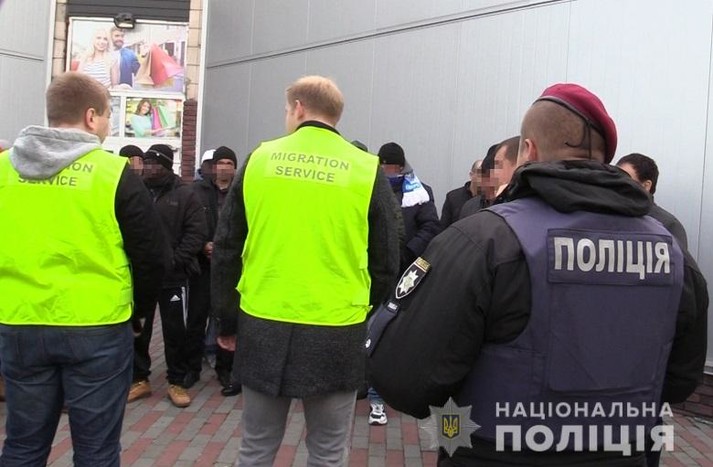 Під час профілактичних заходів під умовною назвою «Мігрант» співробітники управління боротьби зі злочинами, пов’язаними з торгівлею людьми, поліції Києва спільно з представниками міграційної служби виявили ринки, де без необхідних документів працювали громадяни Таджикистану, Йорданії, Сомалі, Нігерії, Азербайджану, Алжиру, Конго, Єгипту та Грузії. Деякі з них потрапили на територію української держави незаконно, а в інших осіб закінчився термін тимчасового перебування в Україні.