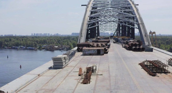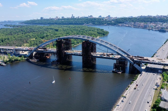 «На Подільському мостовому переході розпочався демонтаж шпренгелів, які на період монтажу арки утримували її у формі проектної дуги. Роботи відбуваються з постійним геодезичним супроводом у зв’язку із високим тиском елементів арки на шпренгелі. Як тільки цей процес буде завершено, розпочнеться демонтаж тимчасових опор», – наголосив Дмитро Давтян.