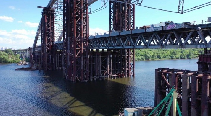 На київському мосту-довгобуді йде підготовка до демонтажу тимчасових опор (фото)