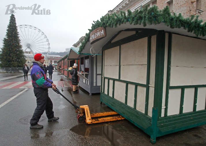 На Контрактовій кипить робота: монтується новорічне містечко (фото)