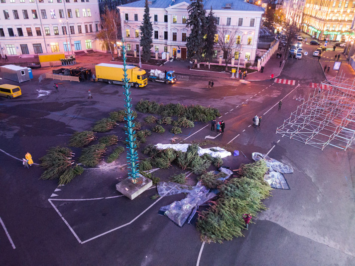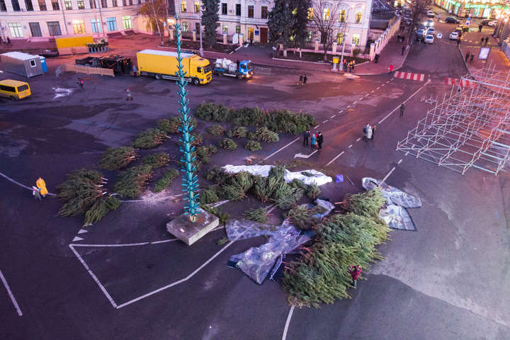 26 листопада комунальники почали підготовку до встановлення новорічної ялинки в центрі Києва. Також на Софійській площі комунальники почали монтувати новорічне містечко.