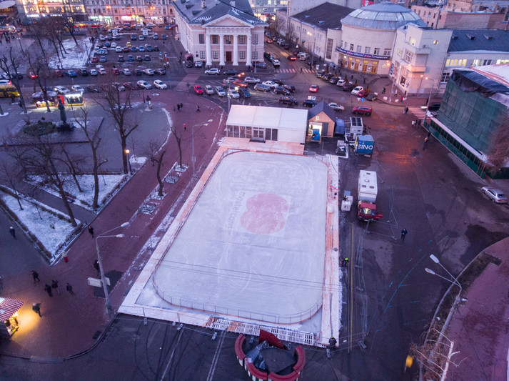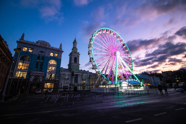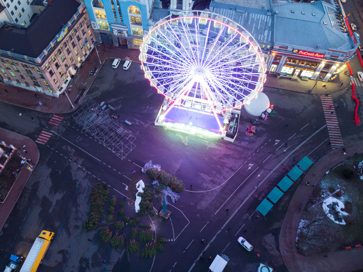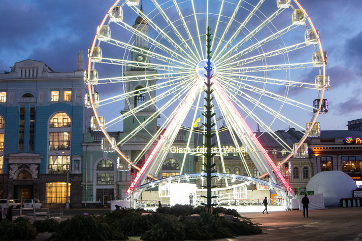 На тлі колеса огляду з'явився силует майбутньої ялинки, а на проїжджій частині майже готовий льодовий каток. Про це повідомляє Інформатор.