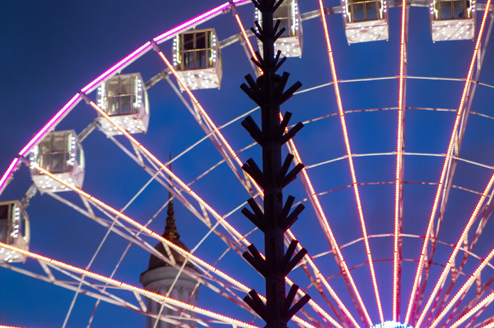 На місці, де недавно можна було вільно гуляти, лежать елементи майбутньої великої ялинки. Їх закріплять на спеціальному каркасі, який вже зібраний. Після того, як ялинка буде готова і загориться вогнями, вона створить гарний дует з колесом огляду.
