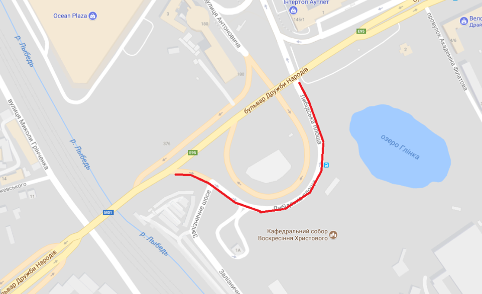 Рух транспорту обмежено на ділянці від з’їзду з бульвару Дружби Народів до шляхопроводу над Либідською площею: