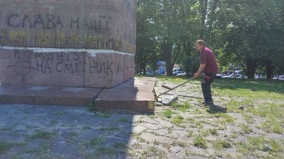 На Либідській площі почали демонтувати пам’ятник чекістам