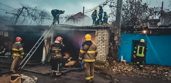 В ході гасіння рятувальники винесли з гаража ємності з паливо-мастильними матеріалами та газові балони.