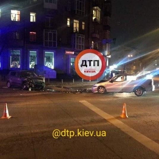 У середу, 9 грудня, пізно ввечері на перехресті вулиць Юрія Іллєнка та Дегтярівської (поблизу із станцією метро «Лук‘янівська») сталася серйозна дорожньо-транспортна пригода: зіштовхнулися автомобілі Geely та Kia.