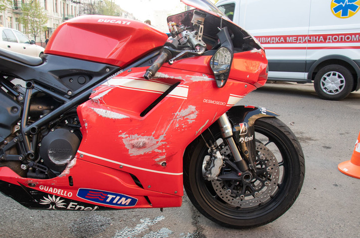 У середу, 24 квітня, на вулиці Юрія Іллєнка, 16 в Києві сталася ДТП за участю мотоцикла: автомобіль Skoda Octavia зачепив мотоцикл Ducatti.