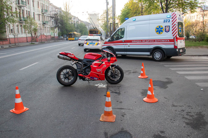 Як повідомлялося, 23 квітня у Голосіївському районі Києва на перехресті вулиць Михайла Максимовича та провулку Охтирського сталася ДТП з потерпілим: зіткнулися автомобіль Saab 9000 і мотоцикл Honda.