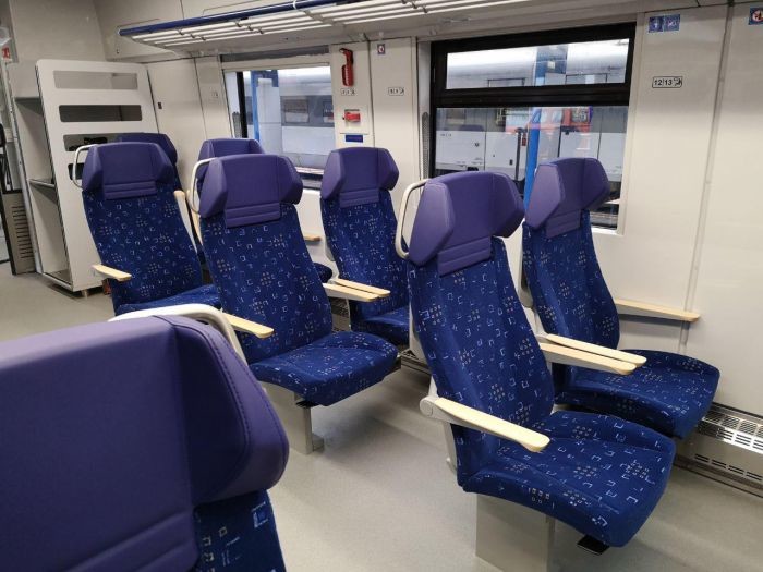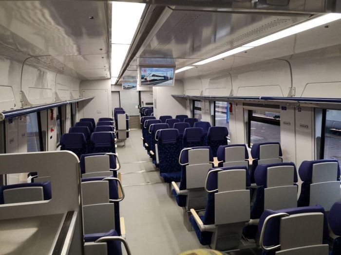 Найбільш просторим є проміжний вагон, в якому передбачено 61 місце за схемою 2х2, є санітарний модуль. В одному з головних вагонів 58 місць за схемою 2х3, там же є купе стюарда. В іншому головному вагоні - 51 місце, в цьому вагоні знаходиться санітарний модуль збільшеного розміру для пасажирів з особливими потребами, є місце для колясок. Всього поїзд розрахований на 470 пасажирів з урахуванням стоячих місць.