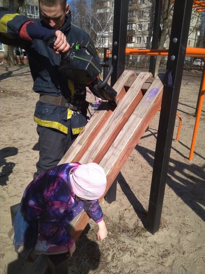По прибуттю рятувальників було встановлено, що між дерев’яними рейками спортивного снаряду застрягла нога дівчинки 2012 року народження. За допомогою гідравлічного інструменту рятувальники звільнили дитину, котра залишилась неушкодженою.