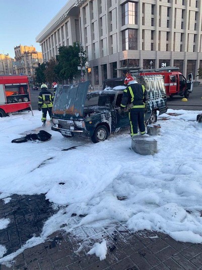 Третій подібний виклик надійшов 3 серпня о 05:54. Горів автомобіль на перехресті вул. Інститутської та Майдану Незалежності. До місця виклику було направлено рятувальників 2 Державної пожежно-рятувальної частини. Пожежа виникла у салоні автомобіля ВАЗ. О 06:03 пожежу було ліквідовано. Внаслідок пожежі згорів салон автомобіля.