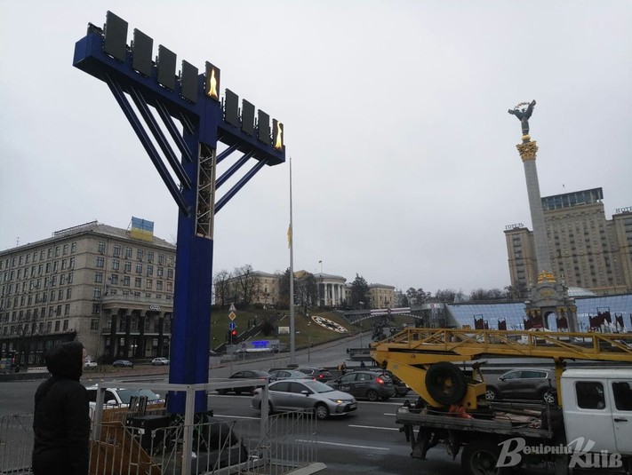 Федерація єврейських общин України встановила на Майдані Незалежності в Києві величезну Менору до святкування Хануки. Менора або Ханукія встановлена зі сторони Головпоштамту.