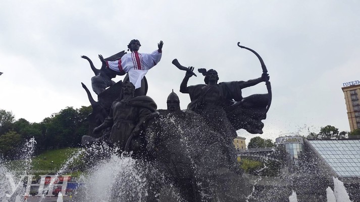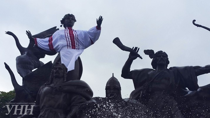 На Майдані пам'ятник засновникам Києва одягнули у вишиванку