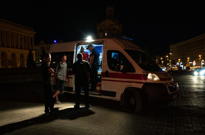 Після розбірок компанія з трьох хлопців зникла в невідомому напрямку. На Майдан викликали поліцію і медиків. Лікарі оглянули постраждалих і госпіталізували одного хлопця з ножовими пораненнями обличчя.