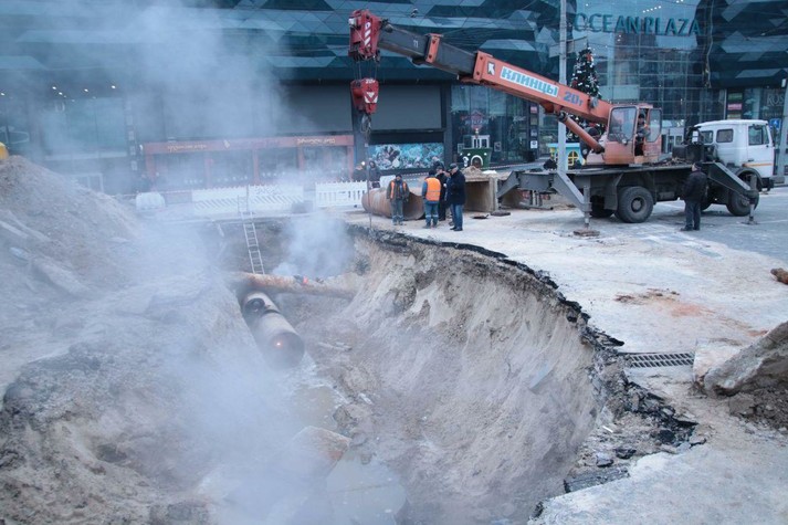 Під час пориву труби тепломережі біля ТРЦ Ocean Plaza постраждало 10 осіб, семеро з яких госпіталізовані.