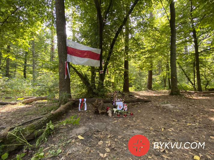 У лісопарковій зоні у Святошинському районі Києва на місці, де виявили тіло громадянина Білорусі, голови організації «Білоруський дім в Україні» Віталія Шишова з’явився стихійний меморіал. Про це повідомляю видання «Букви».