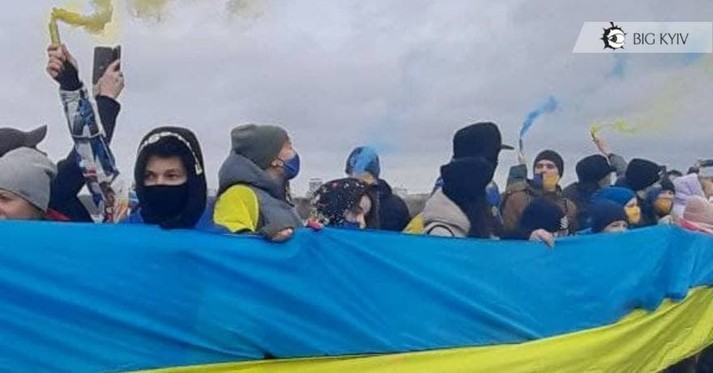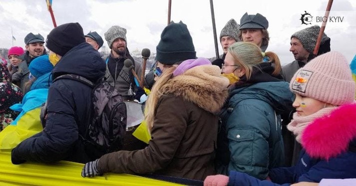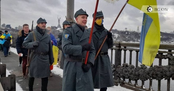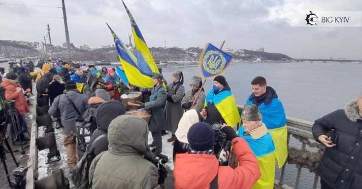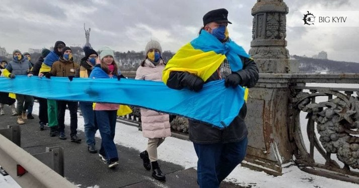 Активісти у День Соборності України утворили на мосту Патона у Києві «живий ланцюг», що символізує єдність української держави.