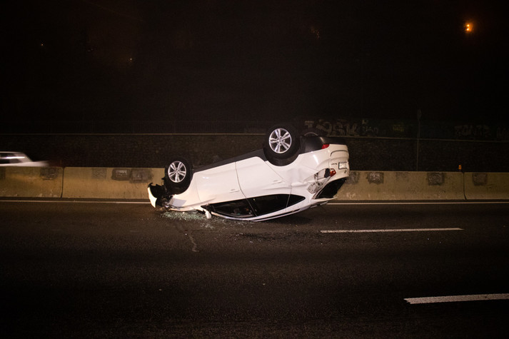 У ніч на п’ятницю, 25 жовтня, на Набережному шосе в Києві сталася ДТП з перекиданням. На проїжджій частині перекинувся Hyundai Tucson.