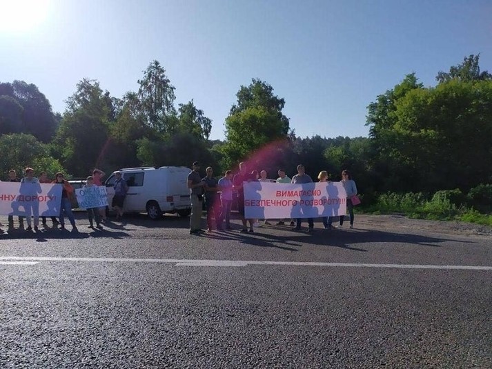 Люди вийшли на трасу на мітинг, вимагаючи зробити цей розворот безпечним і таким, що не буде створювати затори на дорозі.