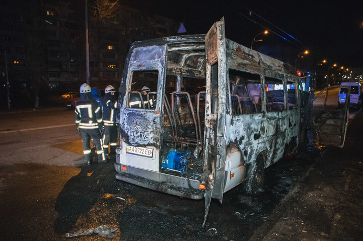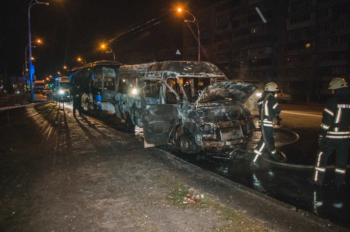 На Оболоні дотла згоріла маршрутка (фото, відео)