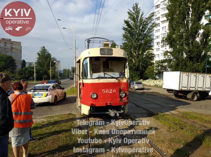 У середу, 15 травня, вранці на вулиці Героїв Дніпра в Оболонському районі столиці зіткнулися трамвай і вантажівка, що перевозила хліб. Про це повідомляється на сторінці спільноти «Київ оперативний» в Facebook.