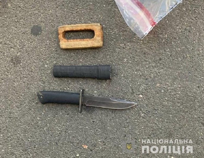 У ході проведення поверхневого огляду у чоловіка виявили та вилучили предмети, схожі на кастет та ніж, які направили на експертне дослідження.