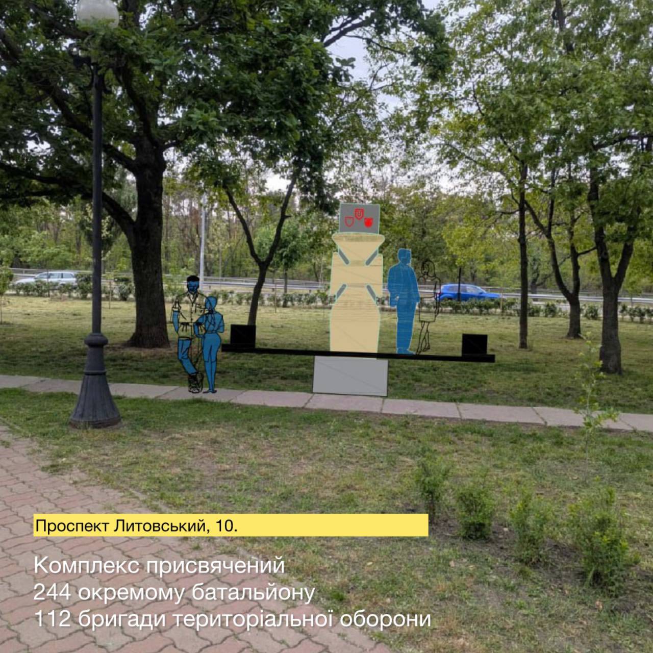 Другий меморіал передбачено встановити у сквері за адресою: проспект Литовський, 10. Комплекс буде присвячений 244 батальйон тероборони ЗСУ.