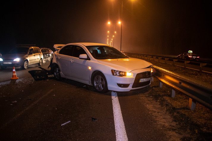 У понеділок, 29 жовтня, у Києві на вулиці Богатирській сталася подвійна ДТП: Toyota Camry врізалася в Mitsubishi, у який за годину до цього в’їхав Peugeot.
