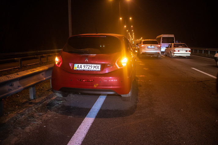 Peugeot 208 не витримав дистанцію і врізався в Mitsubishi. Машини стояли в другому ряду, а водії чекали на узбіччі приїзду патрульних для оформлення ДТП. О 20:10 Toyota влетіла в Mitsubishi. Від удару Camry розвернуло і відкинуло приблизно на 30 метрів з дороги. Драйвера госпіталізували в лікарню з незначними травмами.