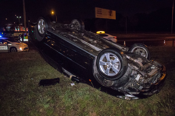 У ніч на понеділок, 14 травня, близько 1:00 на проспекті Героїв Сталінграда у Києві сталася ДТП: Toyota вилетів на зелену зону біля дороги і перекинувся.