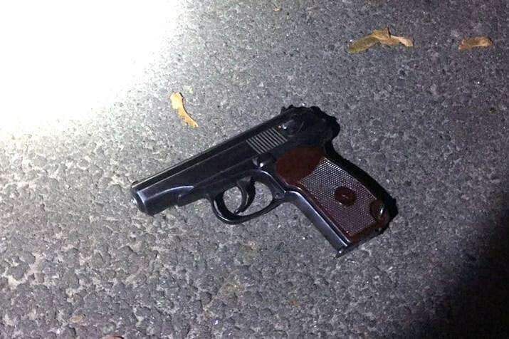 «Працівники полку поліції особливого призначення №1, які патрулювали в Оболонському районі, почули три постріли. Екіпаж терміново розвернувся, поспішив у напрямку, звідки пролунали ці звуки, і дорогою помітив чоловіка, який біг у двори. Правоохоронці кинулися слідом. Втікач зупинився, різко розвернувся, і спецпризначенці зрозуміли, що він тримає у руці пістолет. Поліцейські представилися і в той же час засліпили зловмисника світлом ліхтарика, а відтак затримали його. У нього вилучили пістолет (спецзасіб), у якому один патрон знаходився в патроннику, ще один патрон – у магазині. Після цього патруль під’їхав до торгового закладу на проспекті Мінському, біля якого пролунали постріли, і виявив пораненого 38-річного місцевого мешканця», - йдеться в повідомленні.
