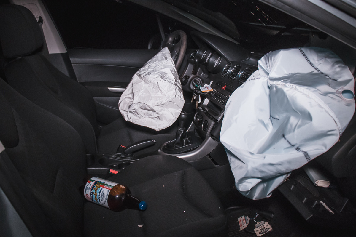 На Оболоні водій на Peugeot протаранив Nissan і втік з пляшкою горілки (фото, відео)