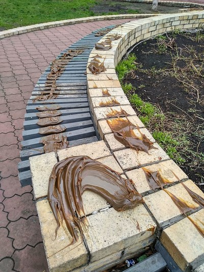 У коментарях до допису киянина, який оприлюднив фото вимазаних лавочок, користувачі соцмережі пишуть, що речовина на лавочках – солідол.