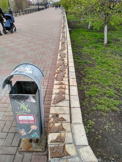 Вимазані солідолом лавочки на Оболонській набережній
