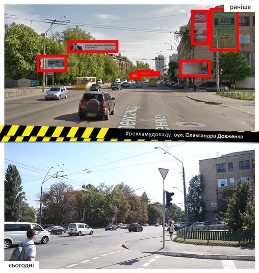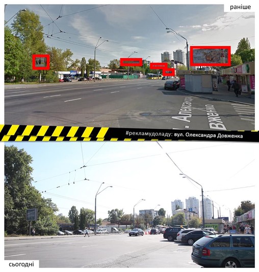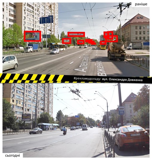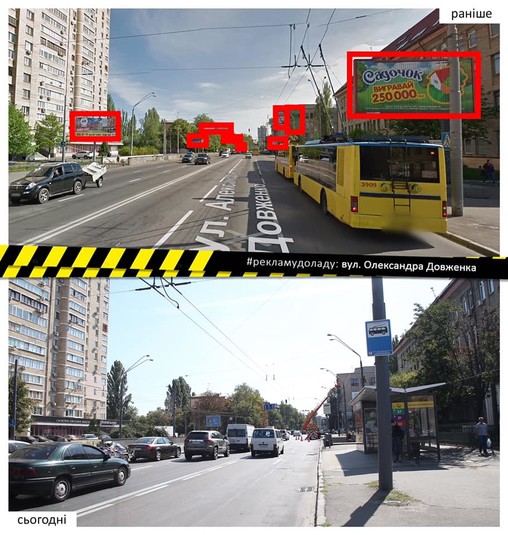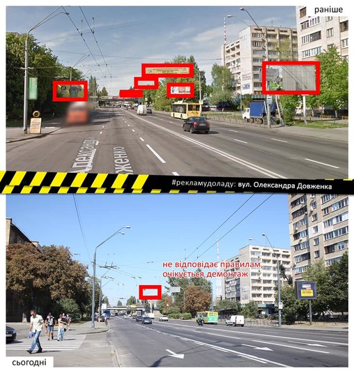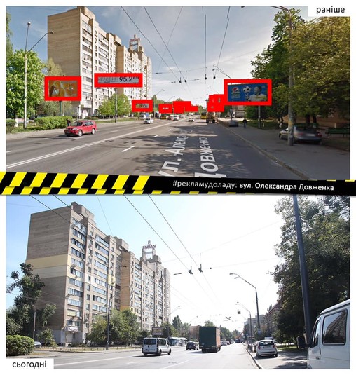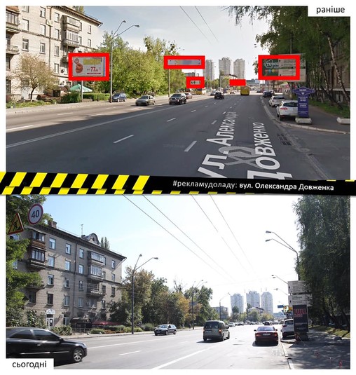 Впорядковано рекламу на столичній вулиці Олександра Довженка протяжністю в один кілометр.